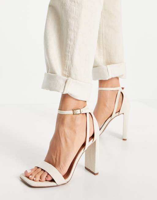 ASOS DESIGN – Noelle – Naturfärgade klacksandaler med blockklack och smal tårem