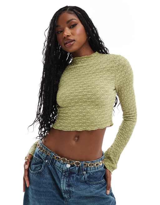 ASOS DESIGN Olivfärgad topp med långa ärmar, utsvängda muddar och textur