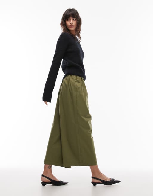 ASOS DESIGN – Olivfärgade culotte-byxor i bomull med supervida ben