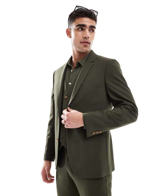 ASOS DESIGN – Olivgrön kavaj med smal passform, del av kostym