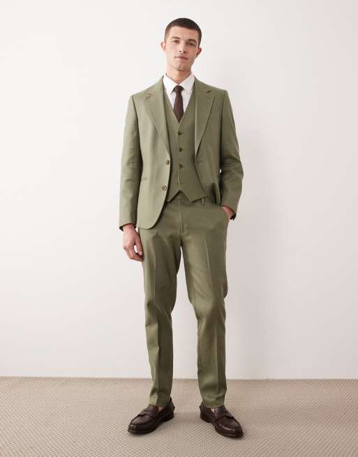 ASOS DESIGN – Olivgrön kostym i linnerikt tyg med extra smal passform