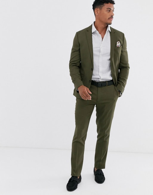ASOS DESIGN – Olivgrön kostym med extra smal passform