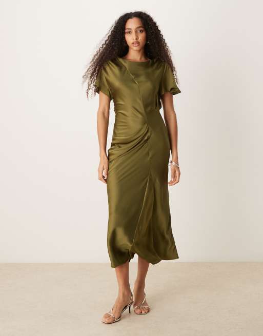 ASOS DESIGN – Olivgrön maxiklänning med utsvängda ärmar i satin