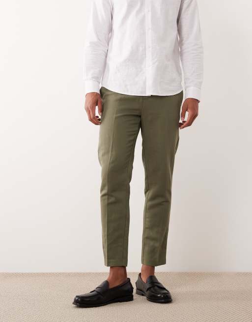 ASOS DESIGN – Olivgröna, avsmalnande finbyxor i linnerikt tyg