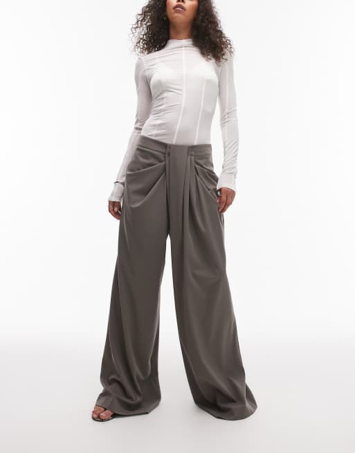 ASOS DESIGN – Olivgröna, figursydda byxor med vida ben och drapering