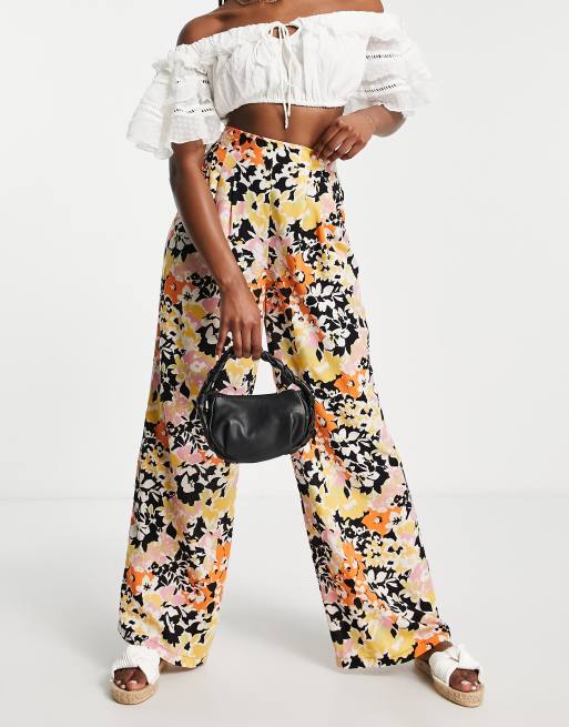 ASOS DESIGN – Orange blommiga byxor med veck