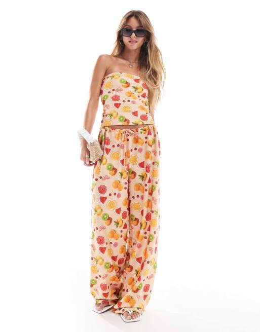 ASOS DESIGN – Orange, fruktmönstrade byxor med vida ben och textur
