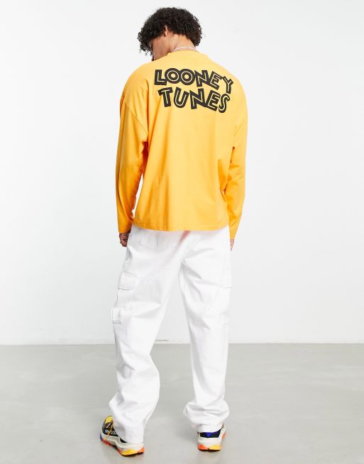 ASOS DESIGN – Orange långärmad t-shirt i oversize med Looney Tunes-tryck