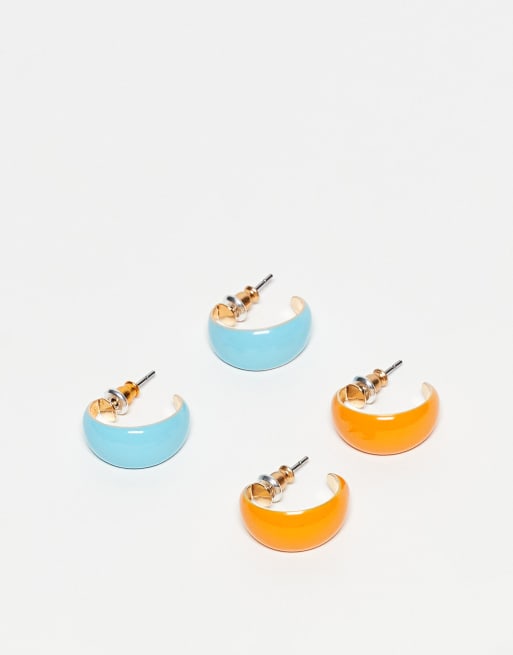ASOS DESIGN – Orange och blått emaljerade, små creoler i flerpack