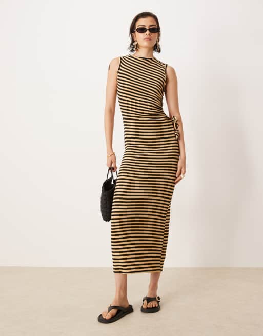 ASOS DESIGN – Orange och svart, randig, ärmlös maxiklänning i frotté med utskurna detaljer i sidan