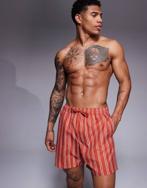 ASOS DESIGN– Orange, randiga badshorts i medellång modell