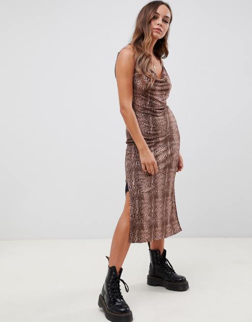 ASOS DESIGN – Ormmönstrad underklänning i midimodell med vid polokrage