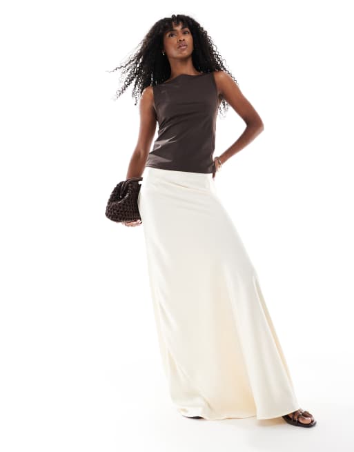 ASOS DESIGN – Ostronvit maxikjol med volym och drapering i satin