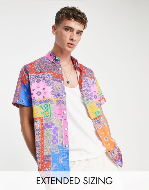 ASOS DESIGN – Paisleymönstrad avslappnad skjorta i satin med knäppning och bandanamönster