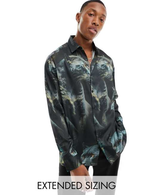 ASOS DESIGN – Pantermönstrad skjorta i satin med avslappnad passform