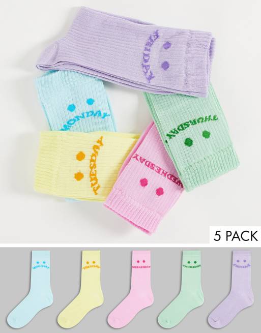ASOS DESIGN – Pastellfärgade ribbade strumpor i vadlång modell med veckans dagar, 5-pack