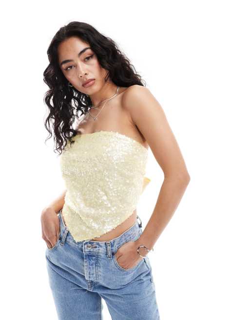 ASOS DESIGN – Pastellgul bandeau-topp med paljetter