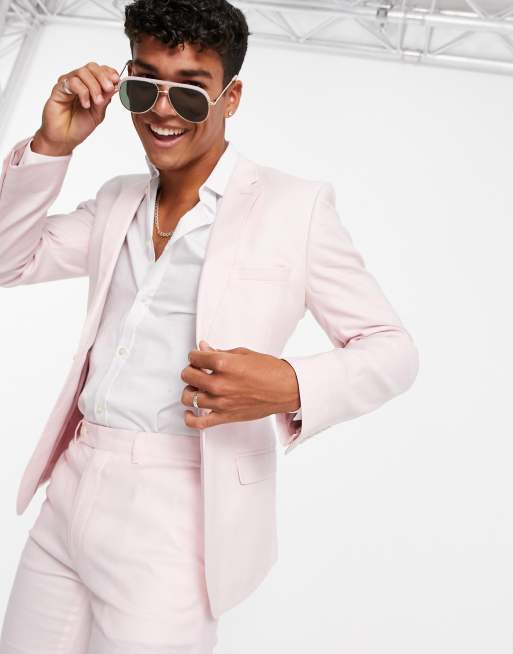 ASOS DESIGN – Pastellrosa supersmal kavaj i linnemix, del av kostym