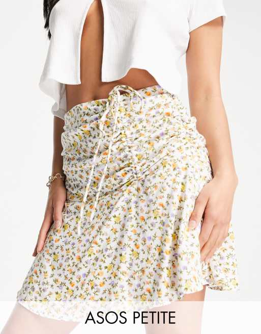 ASOS DESIGN Petite – Småblommig vippig minikjol med rynkad midja