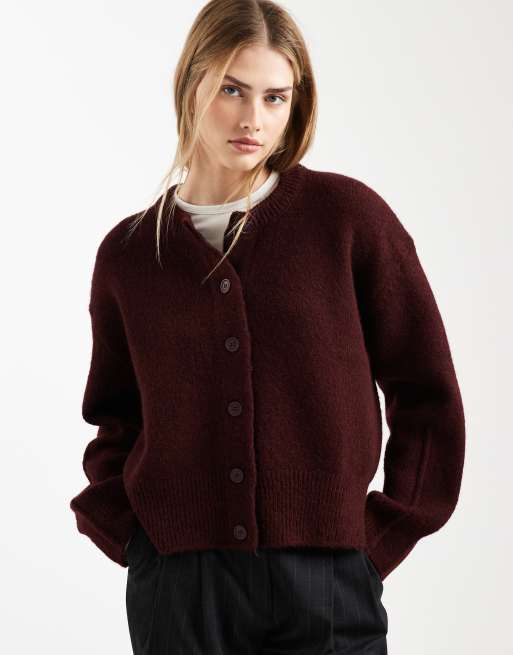 ASOS DESIGN – Plommonfärgad kofta med rund halsringning, boxig passform och sidoslits