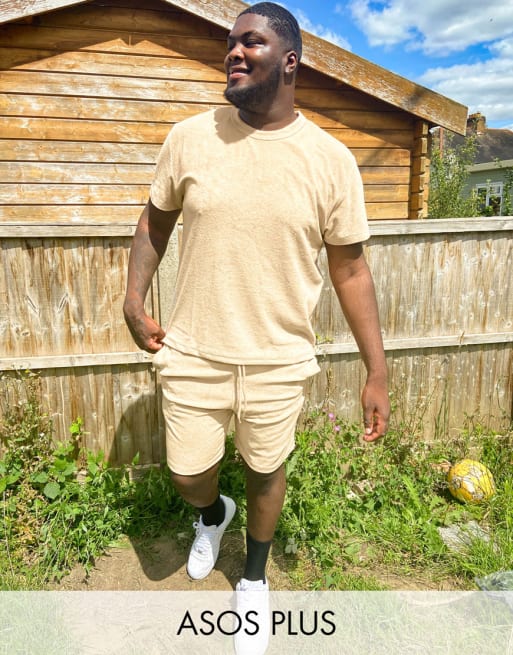 ASOS DESIGN – Plusstorlek – Beige set i frotté