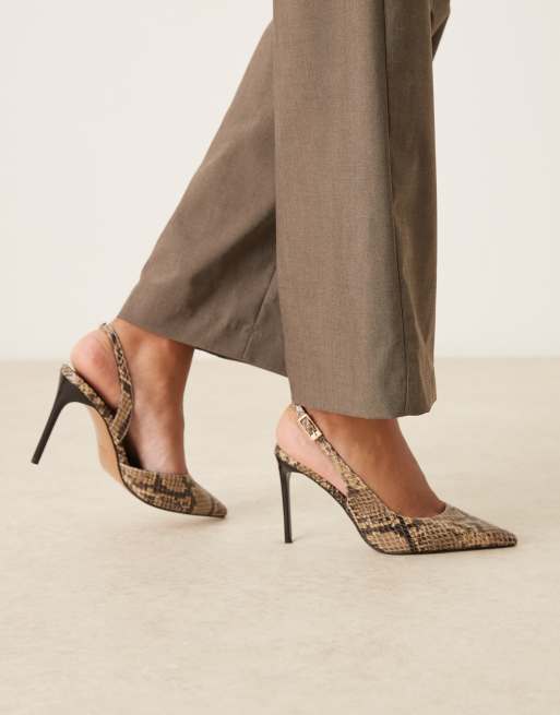 ASOS DESIGN – Polar d'orsay – Ormskinnsmönstrade skor med hälrem och höga klackar
