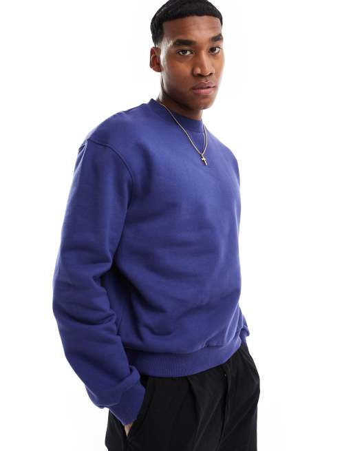 ASOS DESIGN – Premium – Blå, kraftig sweatshirt i oversize med boxig passform, 400gsm