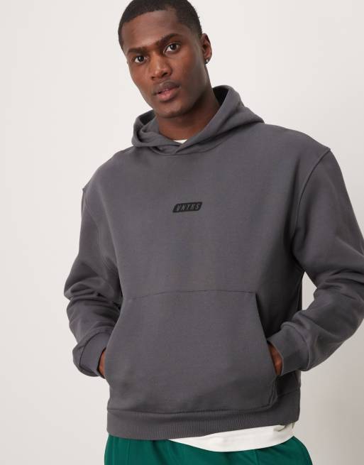 ASOS DESIGN – Premium – Bleksvart, kraftig huvtröja med boxig passform och tryck på bröstet, 400gsm
