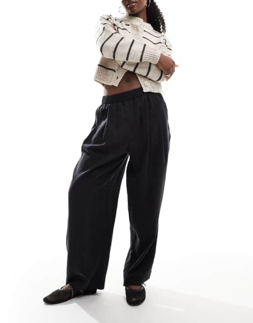 ASOS DESIGN – Premium – Bleksvarta vardagsbyxor med veck och elastisk midja