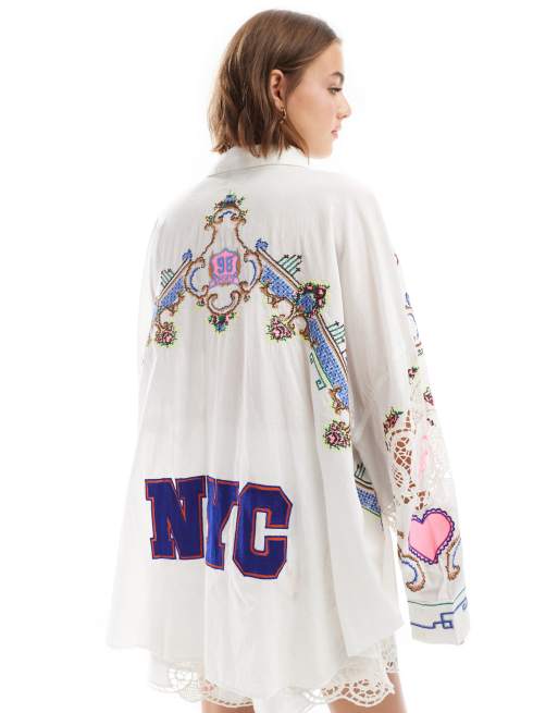 ASOS DESIGN – Premium – Broderad skjorta i oversize, del av set