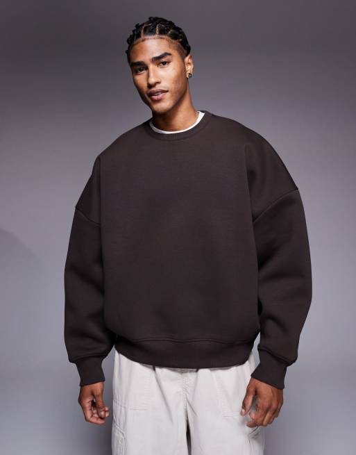 ASOS DESIGN – Premium – Brun, kraftig sweatshirt i extra oversize av scubaliknande material