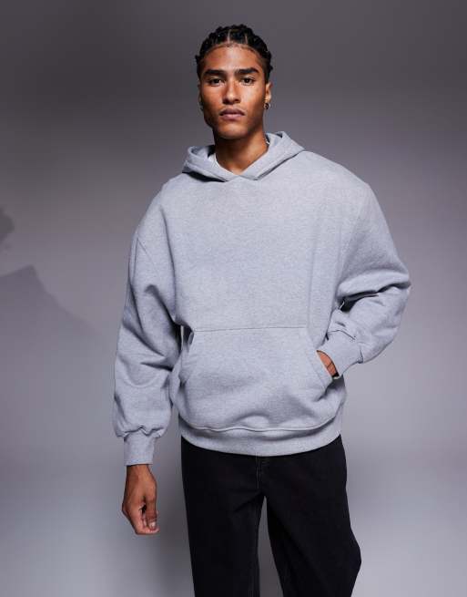 ASOS DESIGN – Premium – Gråmelerad, kraftig huvtröja i oversize, 400gsm