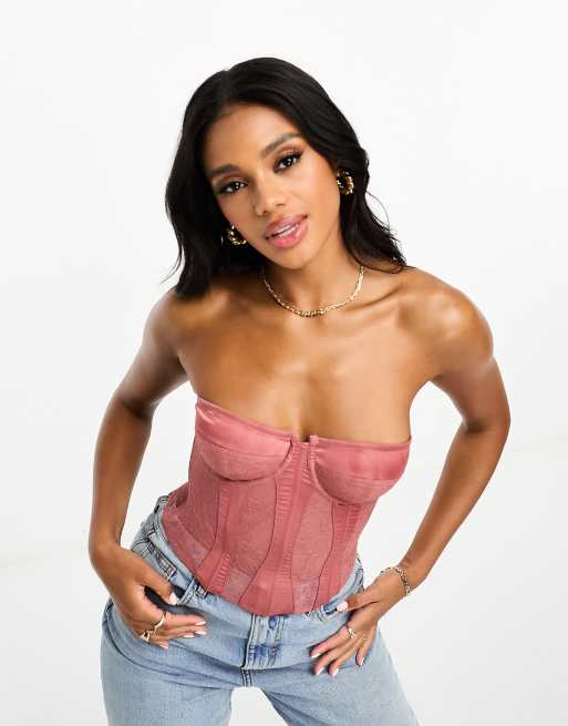 ASOS DESIGN – Premium – Minkgrå korsett med spets- och satinpaneler