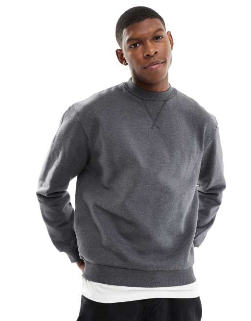 ASOS DESIGN – Premium – Mörkgrå, melerad, kraftig sweatshirt i oversize, 400gsm