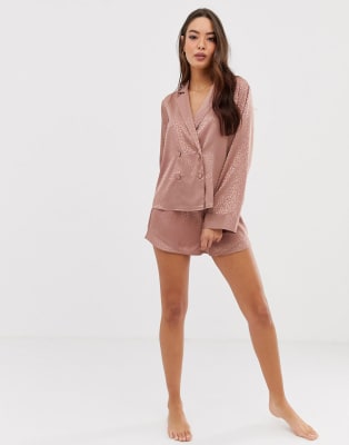 ASOS DESIGN – Premium – Pyjamasjacka och shorts i jacquard-tyg