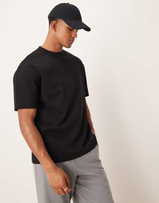 ASOS DESIGN – Premium – Svart, avslappnad t-shirt med interlocksömmar