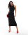 ASOS DESIGN – Premium – Svart midiklänning med brottarringning och asymmetrisk fåll