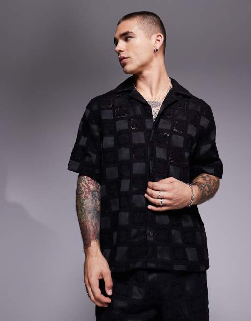 ASOS DESIGN – Premium – Svart, virkad skjorta med platt krage, del av set