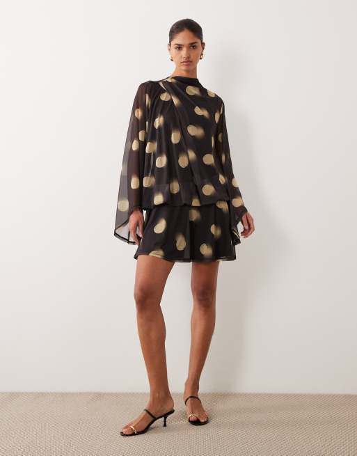ASOS DESIGN – Prickig, draperad miniklänning i mesh med blusärmar