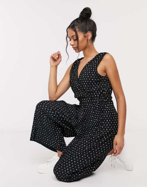 ASOS DESIGN – Prickig plisserad jumpsuit med omlottdesign
