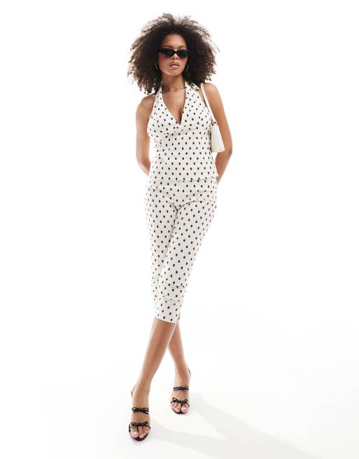 ASOS DESIGN – Prickigt set i bengaline med bandeau-topp och capribyxor
