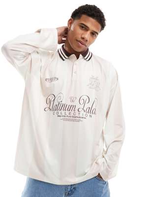 ASOS DESIGN – Randig pikétröja i oversize och sportmaterial med långa ärmar