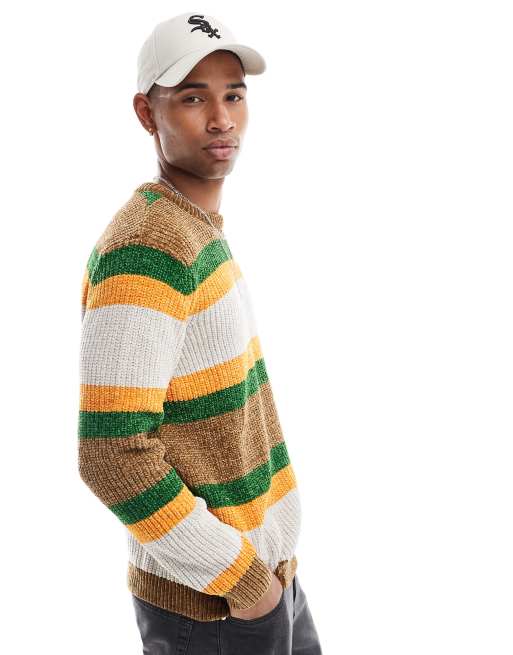 ASOS DESIGN – Randig, stickad tröja i chenille med avslappnad passform