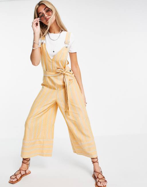 ASOS DESIGN – Randiga hängselbyxor med vida ben