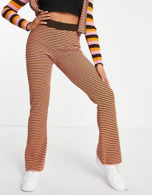 ASOS DESIGN – Randiga, stickade, utsvängda byxor, del av set