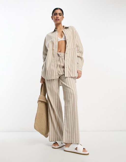 ASOS DESIGN – Randigt set med byxor i dra på-modell i linnemix