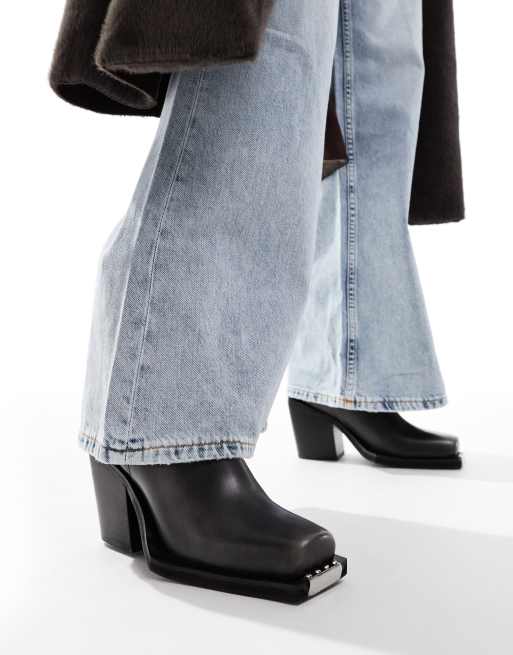 ASOS DESIGN – Relax – Svarta, polerade cowboyboots i läder med tåhätta