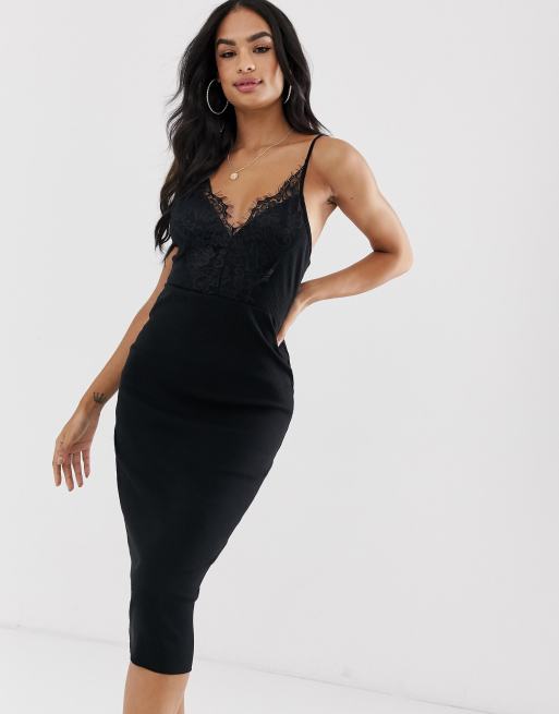 ASOS DESIGN – Ribbad bodycon-klänning i midilängd med spetstopp och smala axelband