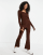 ASOS DESIGN – Ribbstickat set med miniklänning med knappar och utsvängda byxor