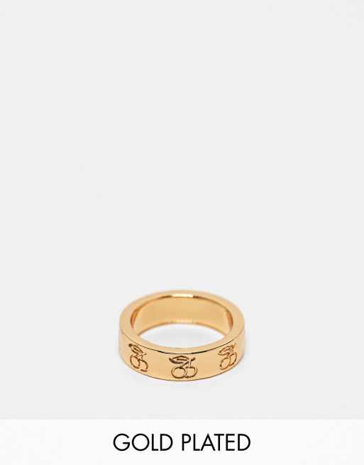 ASOS DESIGN – Ring med 14K guldplätering och graverade körsbär